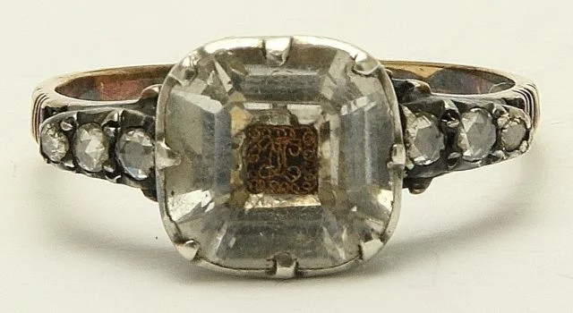 The Georgian Period took place during the reign of King George I –George IV. The Georgian period is separated into Rococo, Gothic, and Neoclassical. Jewelry made during this period was handmade containing various irregularities in design. Consisting of Rose Cut, Cushion Cut, and early Brilliant Cut Diamonds set in gold, as supply of these materials became scarce, copper alloy was substituted for gold. This alloy was called “Pinchback” after it’s inventor. Faceted rosettes of polished steel were used as substitutes for diamonds. By 1750, Rubies, Sapphires, and Emeralds were in fashion along with other gems such as; Amethyst; Chartreuse; Coral; Ivory; and Seed Pearls. Carved stones such as Onyx, Shell, and Carnelian were also popular. Parures or sets consisting of matching Necklaces, Earrings, bracelets, and rings were stylish. Short choker style necklaces, single drop and chandelier style three drop earrings along with Cameos and Mosaics with graduating diamonds were also fashionable. For additional information go a post from the IGS: here